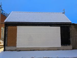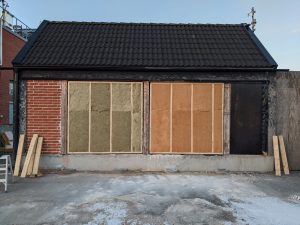 - De båda provväggarna göms under samma vitmålade träfasad.